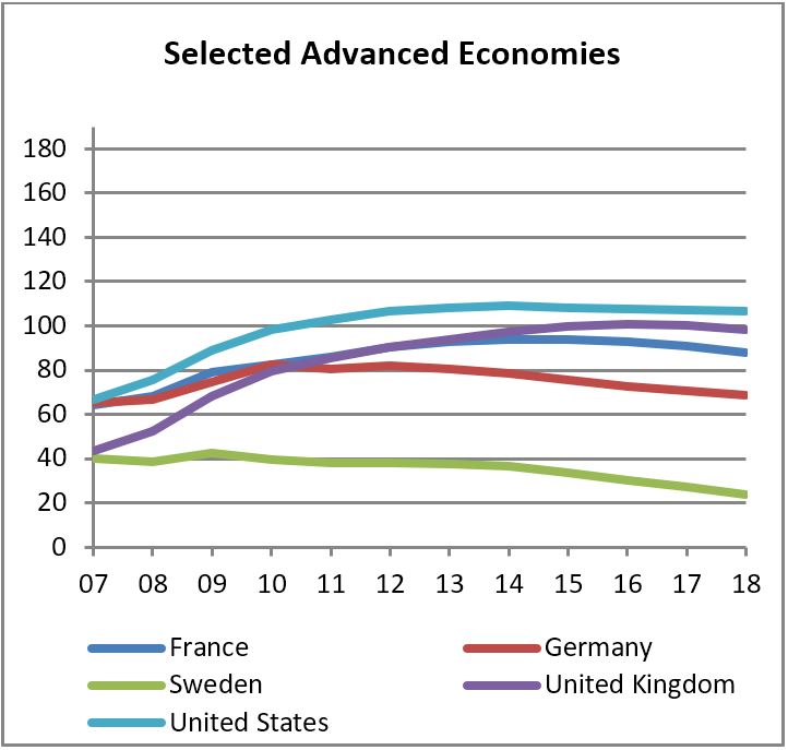 Nor are emerging markets exempt from the risks associated with high debt. The level of debt that is regarded as prudent in emerging markets—about 40 percent of GDP—is generally considerably lower than in the advanced economies, with their much deeper financial markets and better track records of debt management. Emerging markets tend to have lower revenue ratios; they sometimes are more dependent on financing by nonresidents and have a much more uneven history of debt defaults. Countries such as Brazil, Hungary, India, Pakistan, Poland and Thailand, among others, already have debt levels above 40 percent of GDP, sometimes substantially so.