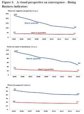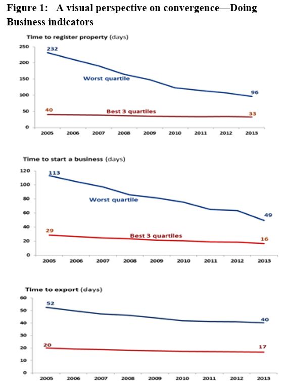 In thinking about why convergence is taking place a couple of factors come to mind. There is greater understanding—in government, the business community, civil society—about the need to create a friendlier environment for private sector activity if economic growth is to take off and if countries are going to be able to benefit from greater foreign investment inflows. In an integrated global economy, local rules matter a great deal and the countries that strive for coherence, predictability and transparency in this area will make greater gains than those that don’t. The Doing Business indicators themselves may have been a key catalyst for change, focusing the attention of stakeholders on weaknesses in the regulatory environment and the presence of better practices in other countries.
